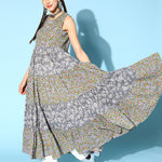 Rayon Printed Tiered Dress (Multicolour)