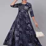 Cotton Ankle Length Printed Flared 3/4 Sleeve Round Neck Kurta (Preorder)