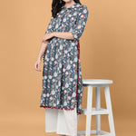 Printed Flared Calf Length 3/4 Sleeve Shirt Collar Neck Cotton Kurta