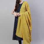 Bandhani Print Rayon Flared Kurta Dupatta Set (Dark Blue) (Pre-Order)