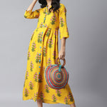 Floral Print Rayon A-Line Kurta (Yellow) (Pre-Order)