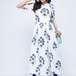 Floral Print Cotton Front Slit Kurta (White) (Pre-Order)