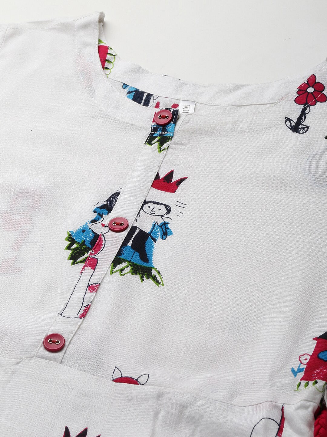 Animal Print Rayon Pleated Kurta (White) (Pre-Order)
