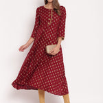 Gold Print Rayon A-Line Kurta (Maroon) (Pre-Order)