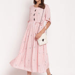 Checkered Rayon Flared Dress Kurta (Pastel Pink) (Pre-Order)