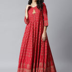 Gold Print Rayon Long Anarkali Kurta (Maroon) (Pre-Order)