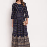 Gold Printed Rayon Flared Kurta (Navy Blue) (Pre-Order)
