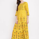 Printed Rayon Tiered Kurta (Yellow) (Pre-Order)