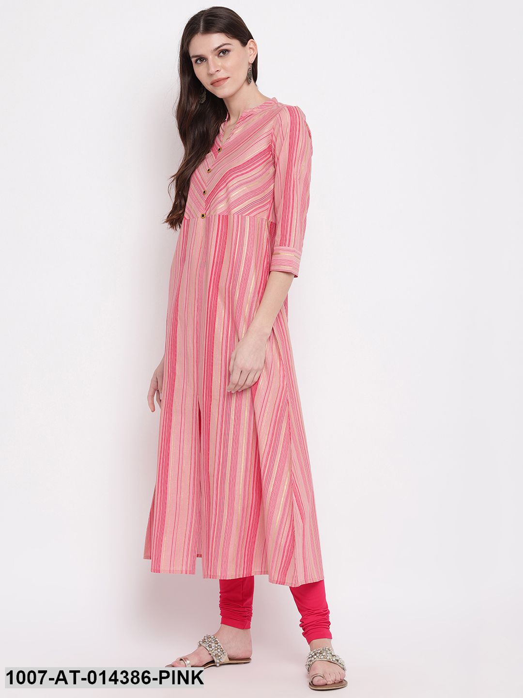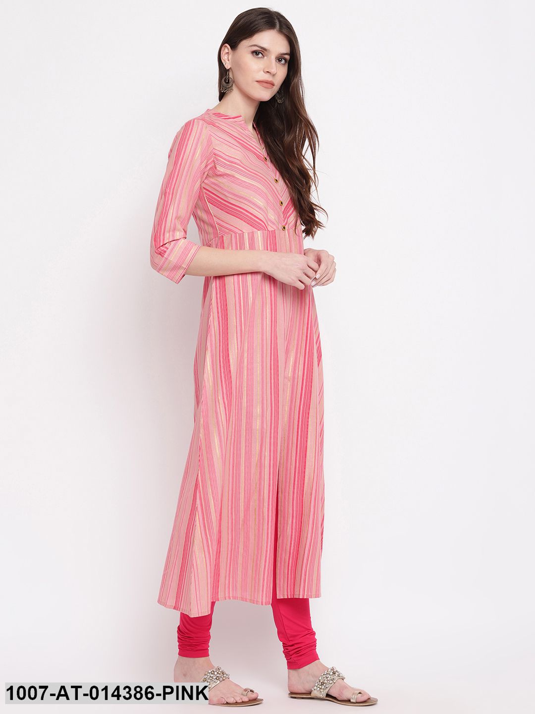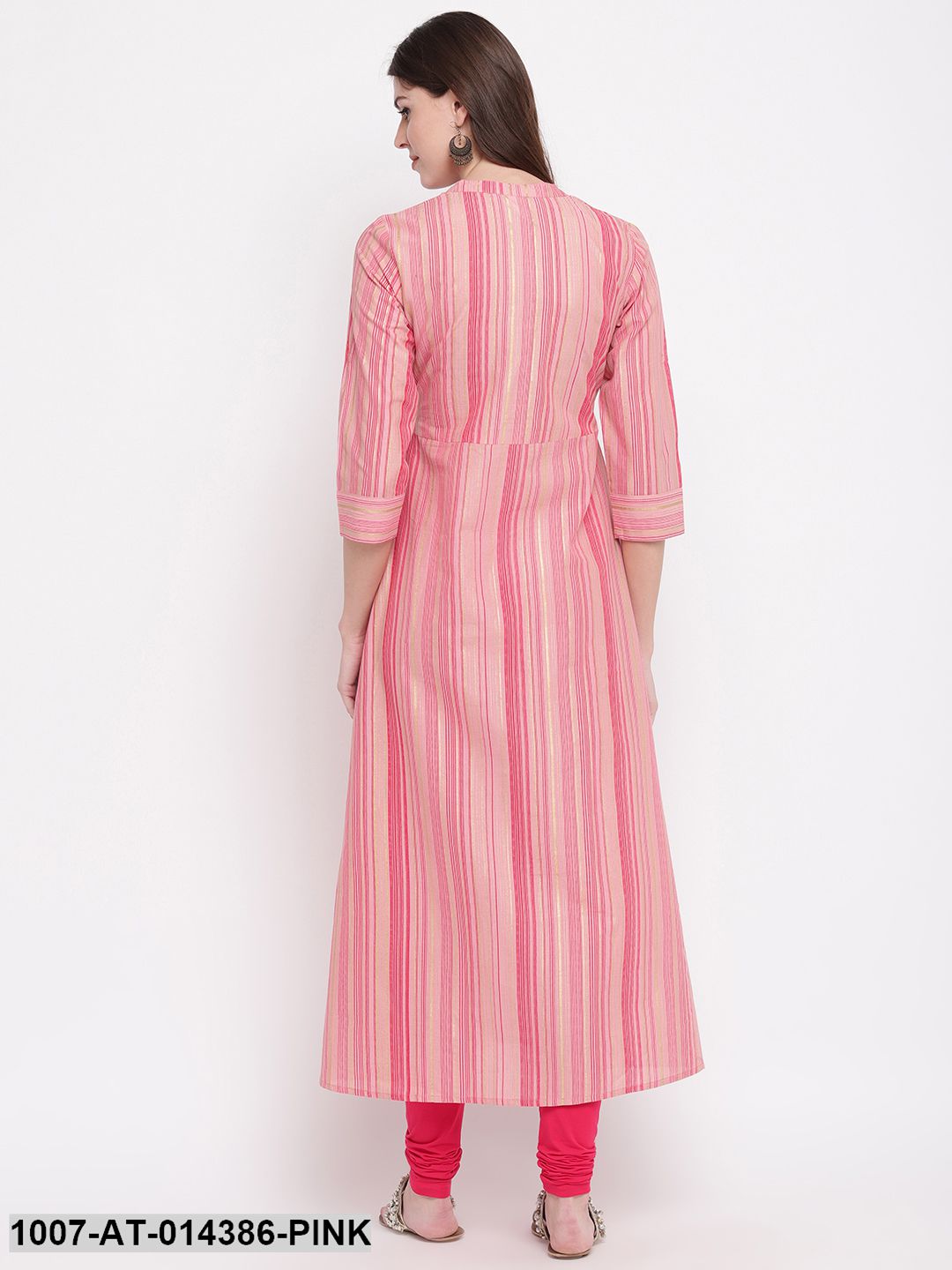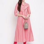 Striped Print Cotton A-Line Kurta (Pink) (Pre-Order)