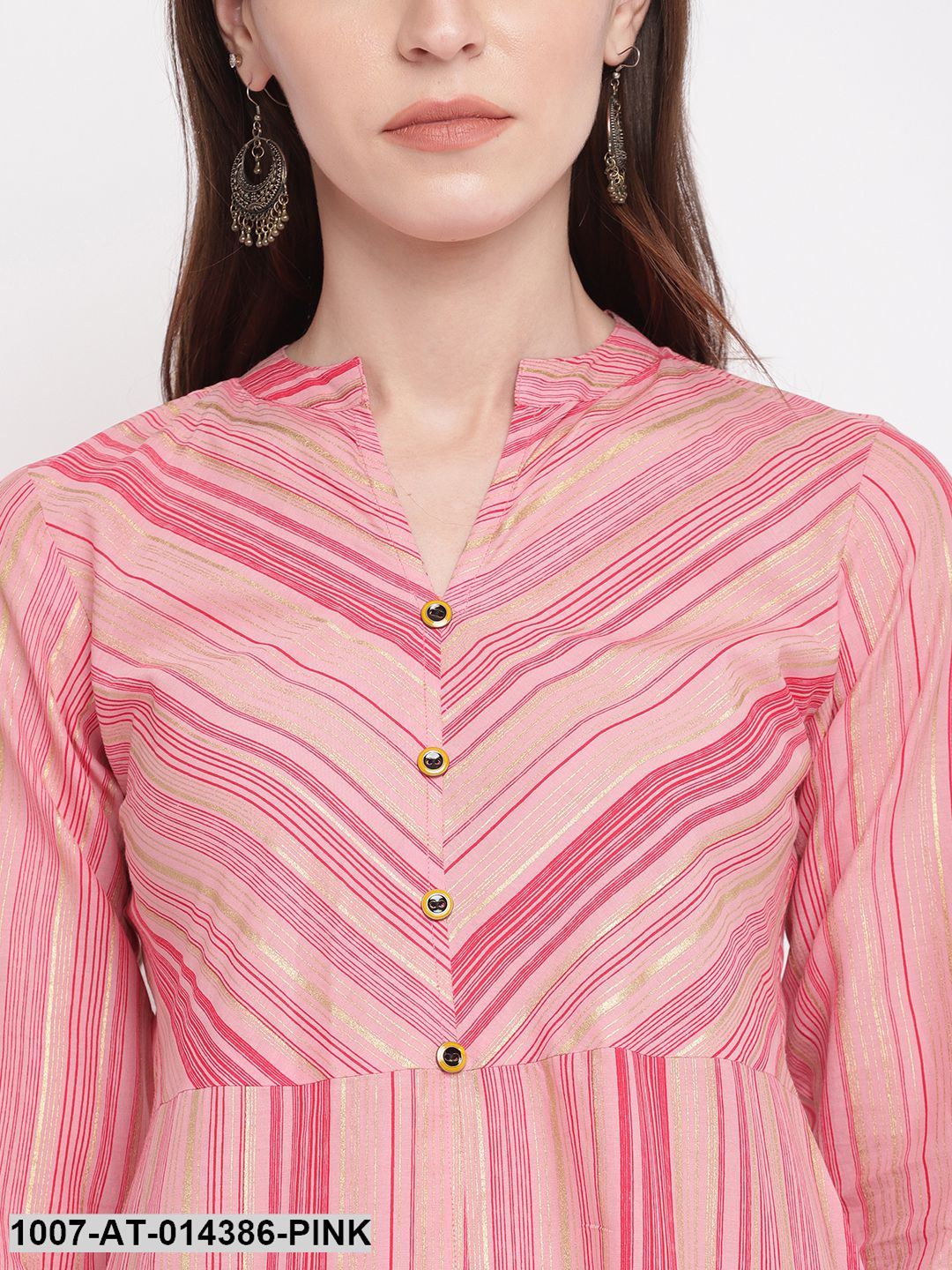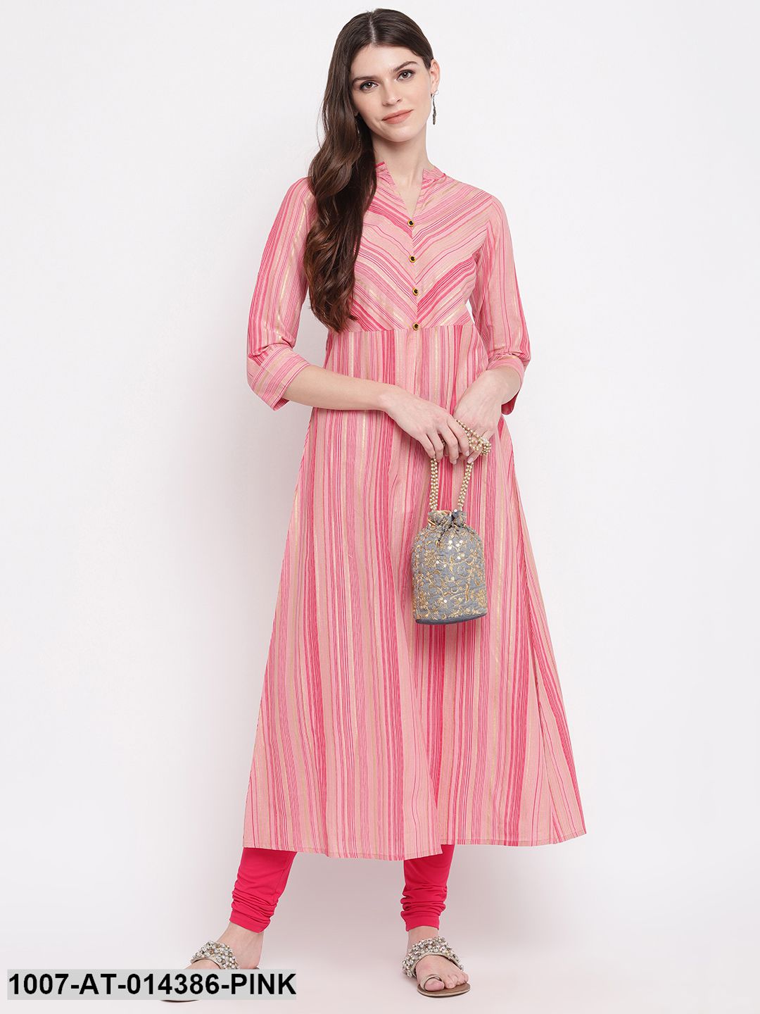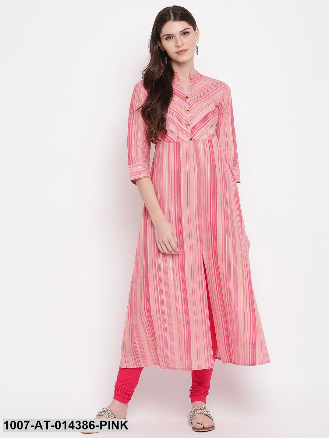 Striped Print Cotton A-Line Kurta (Pink) (Pre-Order)