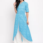 Leheriya Print Cotton High-Low Kurta (Sky Blue) (Pre-Order)