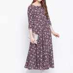 Kalamkari Print Rayon Flared Kurta (Brown) (Pre-Order)