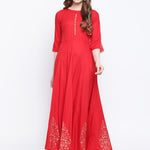 Hand Block Gold Print Rayon Kurta Dress (Red) (Pre-Order)