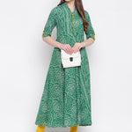Bandhej Print Cotton Flared Kurta (Green) (Pre-Order)