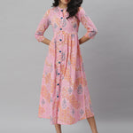 Floral Print Cotton Slub A-Line Kurta (Pink) (Pre-Order)