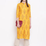 Floral Print Cotton Straight Kurta (Mustard) (Pre-Order)