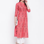 Floral Print Cotton Straight Kurta (Peach) (Pre-Order)