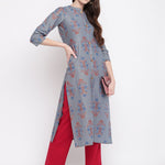 Floral Print Cotton Straight Kurta (Grey) (Pre-Order)