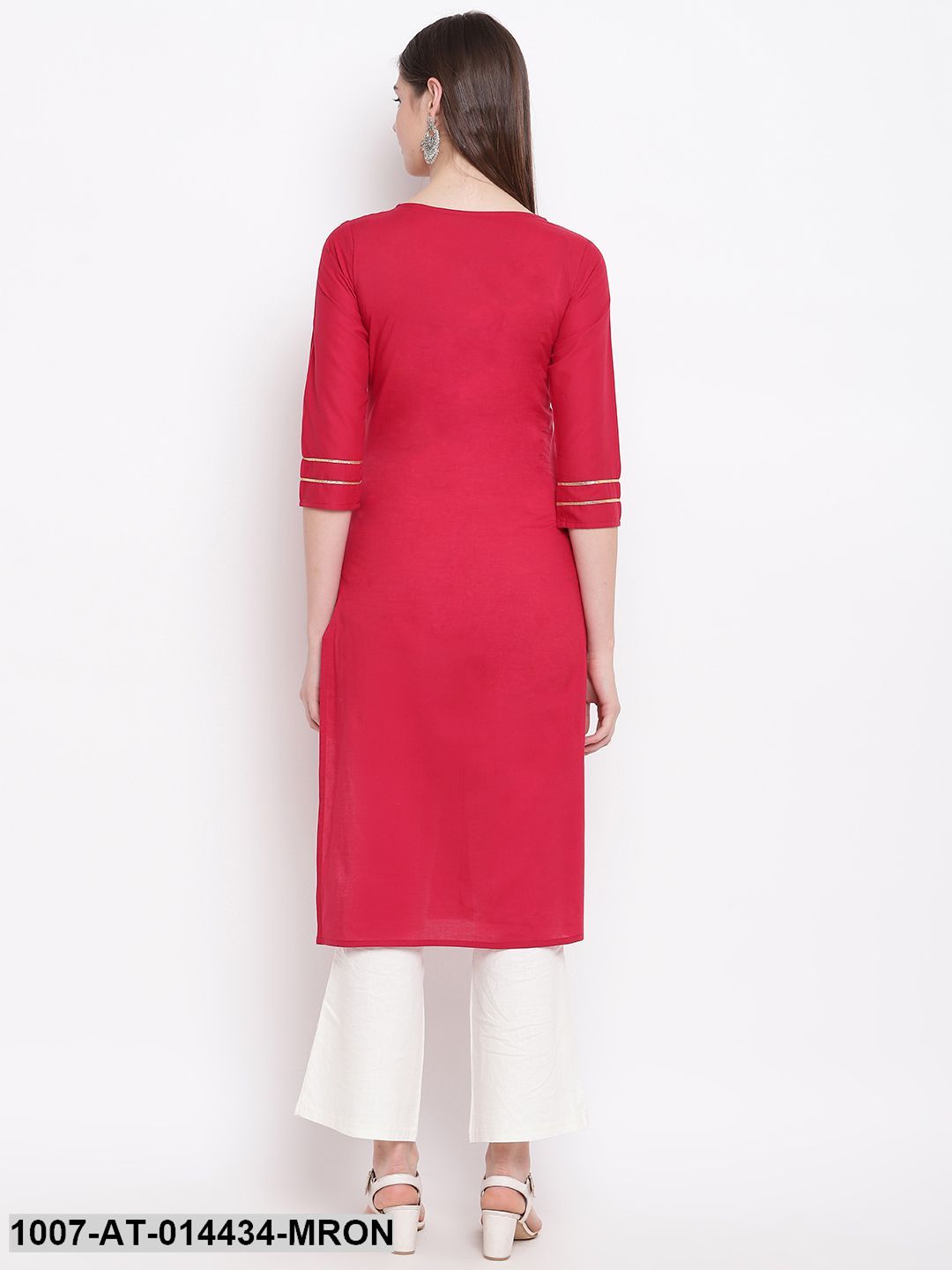 Gold Print Cotton Straight Kurta (Maroon) (Pre-Order)