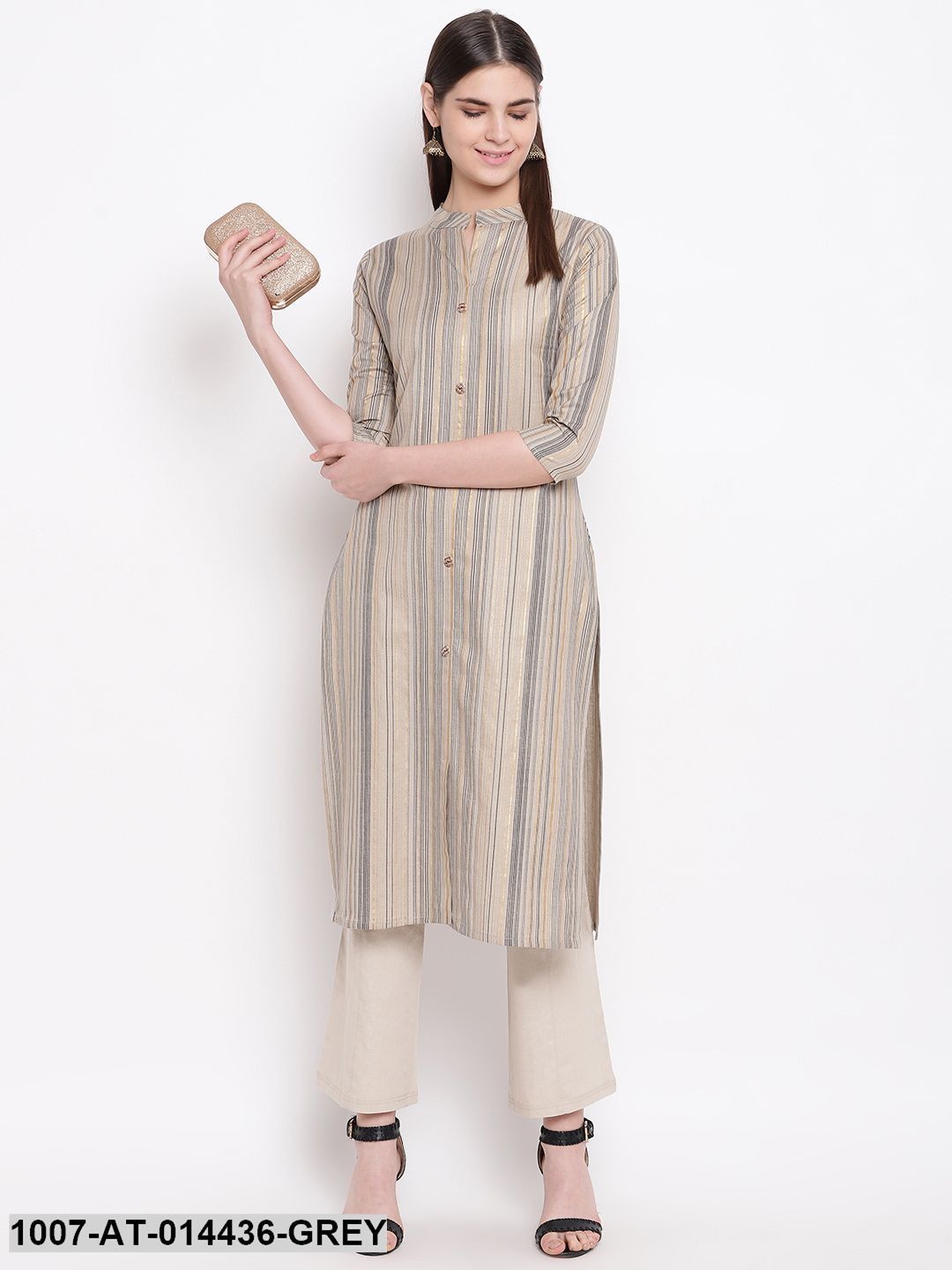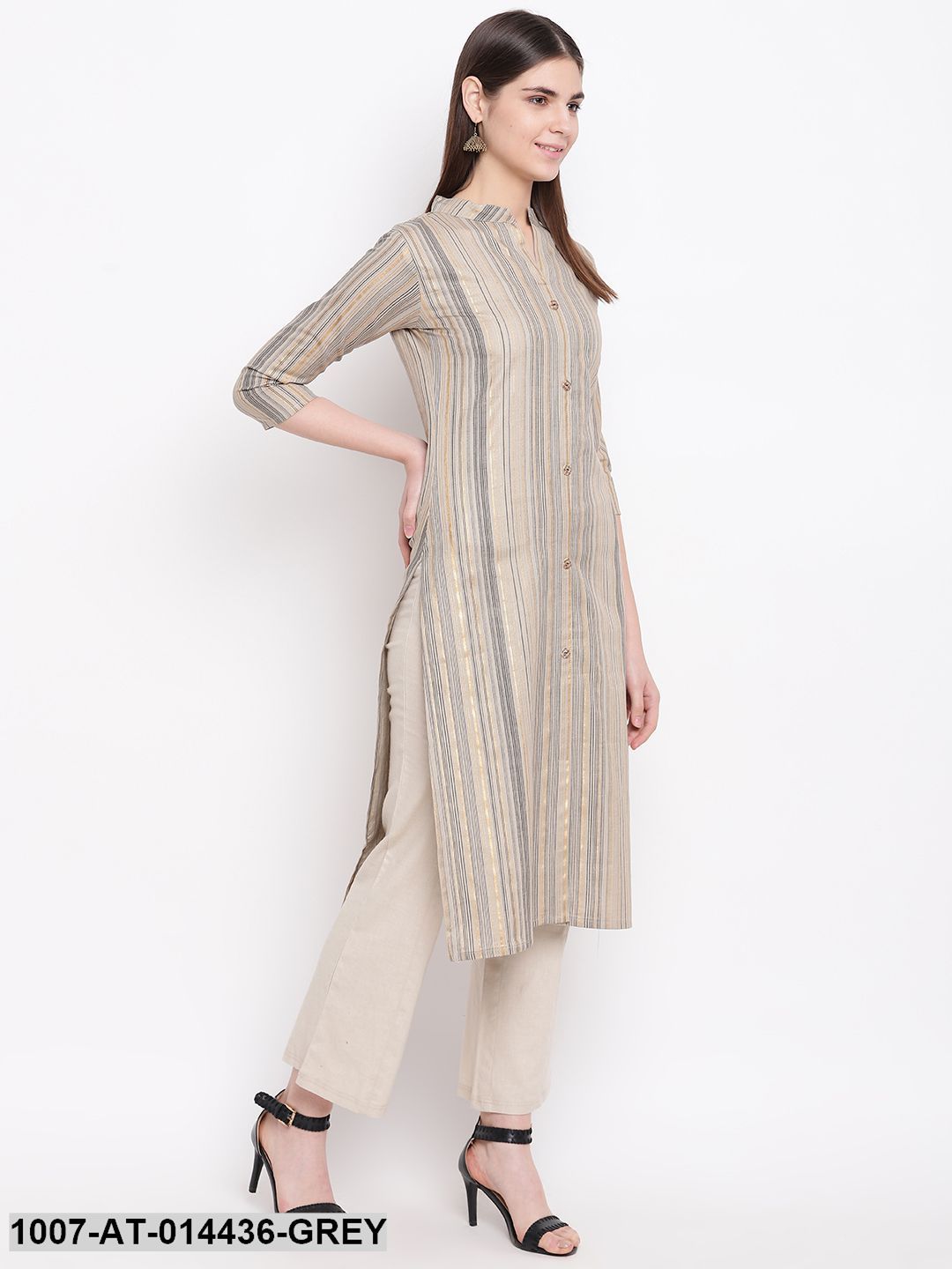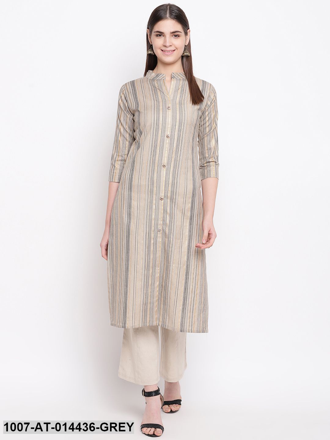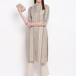 Striped Print Cotton Straight Kurta (Grey) (Pre-Order)