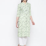 Printed Cotton Straight Kurta (Green) (Pre-Order)