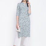 Printed Cotton Straight Kurta (Grey) (Pre-Order)
