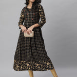 Checkered Rayon Flared Kurta (Black) (Pre-Order)