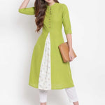 Solid Cotton Slub A-Line Kurta (Green) (Pre-Order)