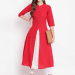 Solid Cotton Slub A-Line Kurta (Red) (Pre-Order)
