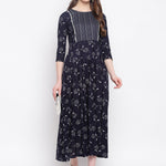 Silver Print Rayon Pleated Kurta (Dark Blue) (Pre-Order)