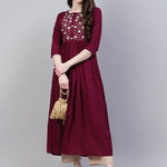 Embroidered Rayon Flared Kurta (Wine) (Pre-Order)