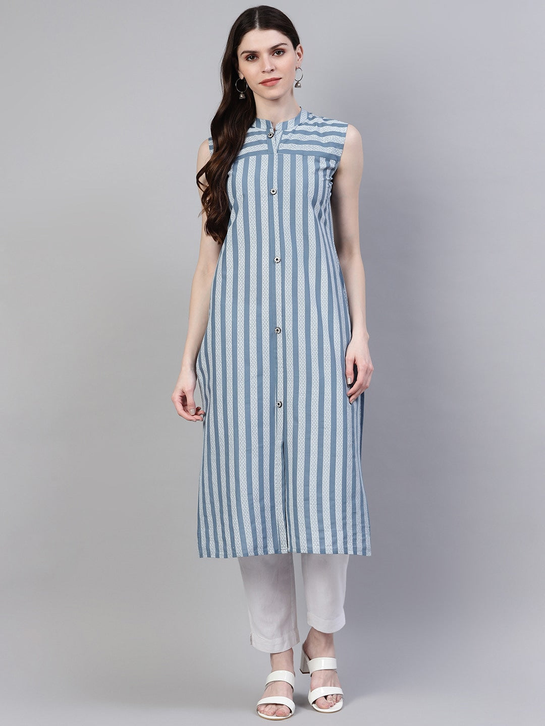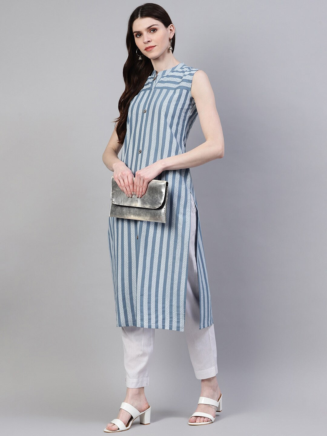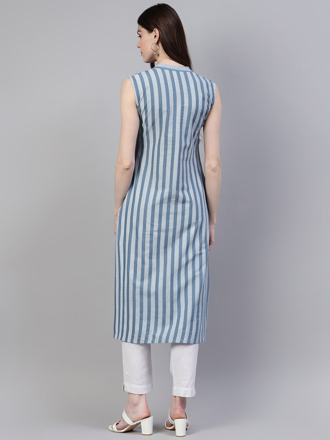 Striped Cotton Straight Kurta (Grey) (Pre-Order)