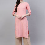 Embroidered Rayon Straight Kurta (Peach) (Pre-Order)