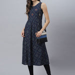 Bandhani Print Rayon Flared Kurta (Dark Blue) (Pre-Order)