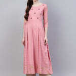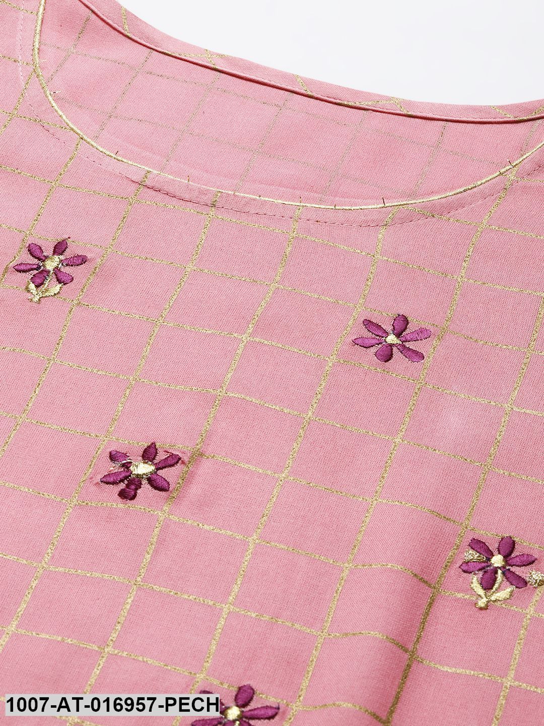 Checkered Rayon Flared Kurta (Peach) (Pre-Order)