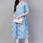 Women's Printed Cotton Flared Kurta (Light Blue) (Pre-Order)