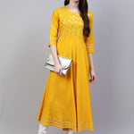 Women's Embellished Rayon Flared Kurta (Mustard) (Pre-Order)