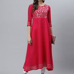 Women's Embellished Rayon Flared Kurta (Pink) (Pre-Order)