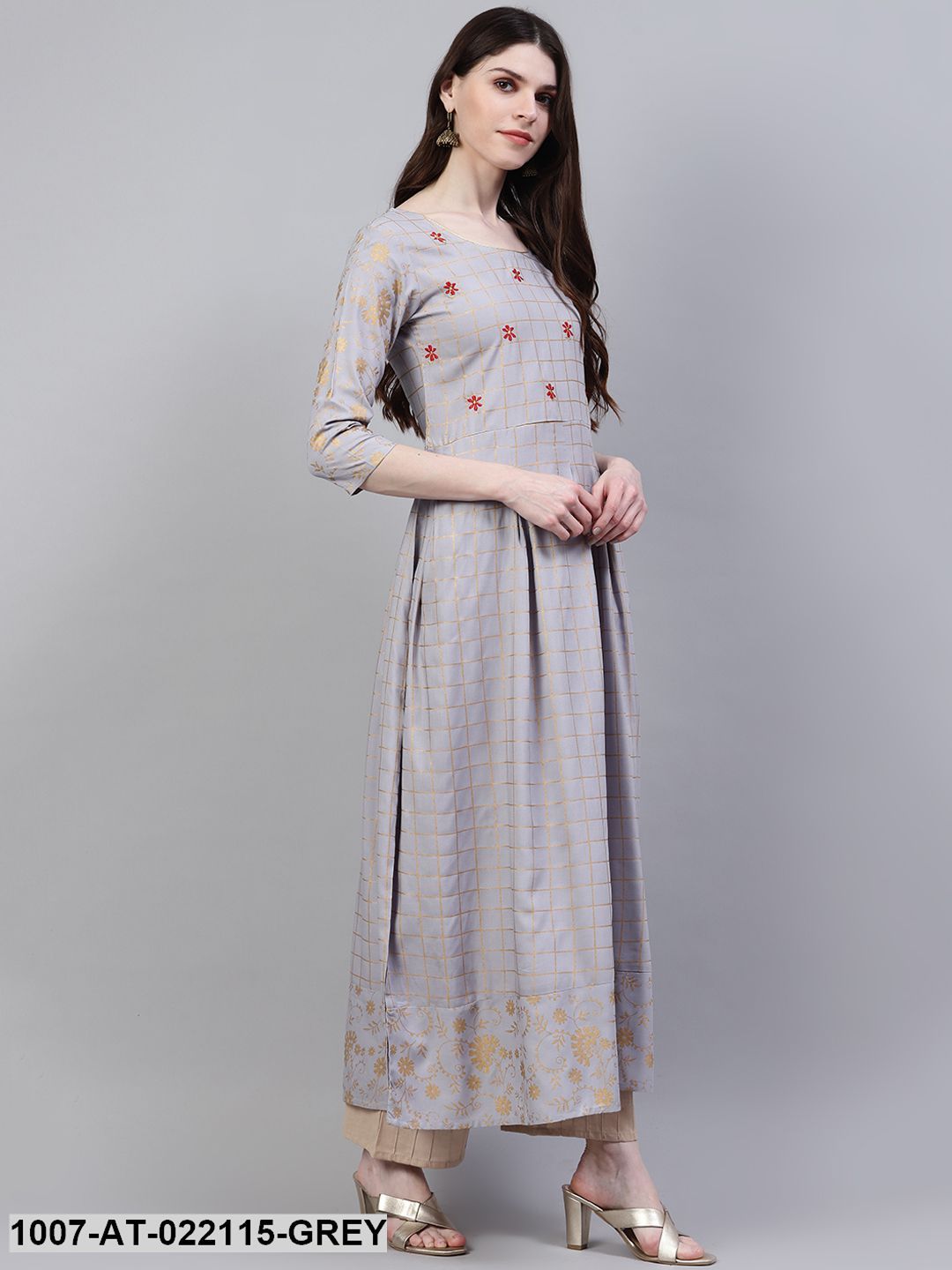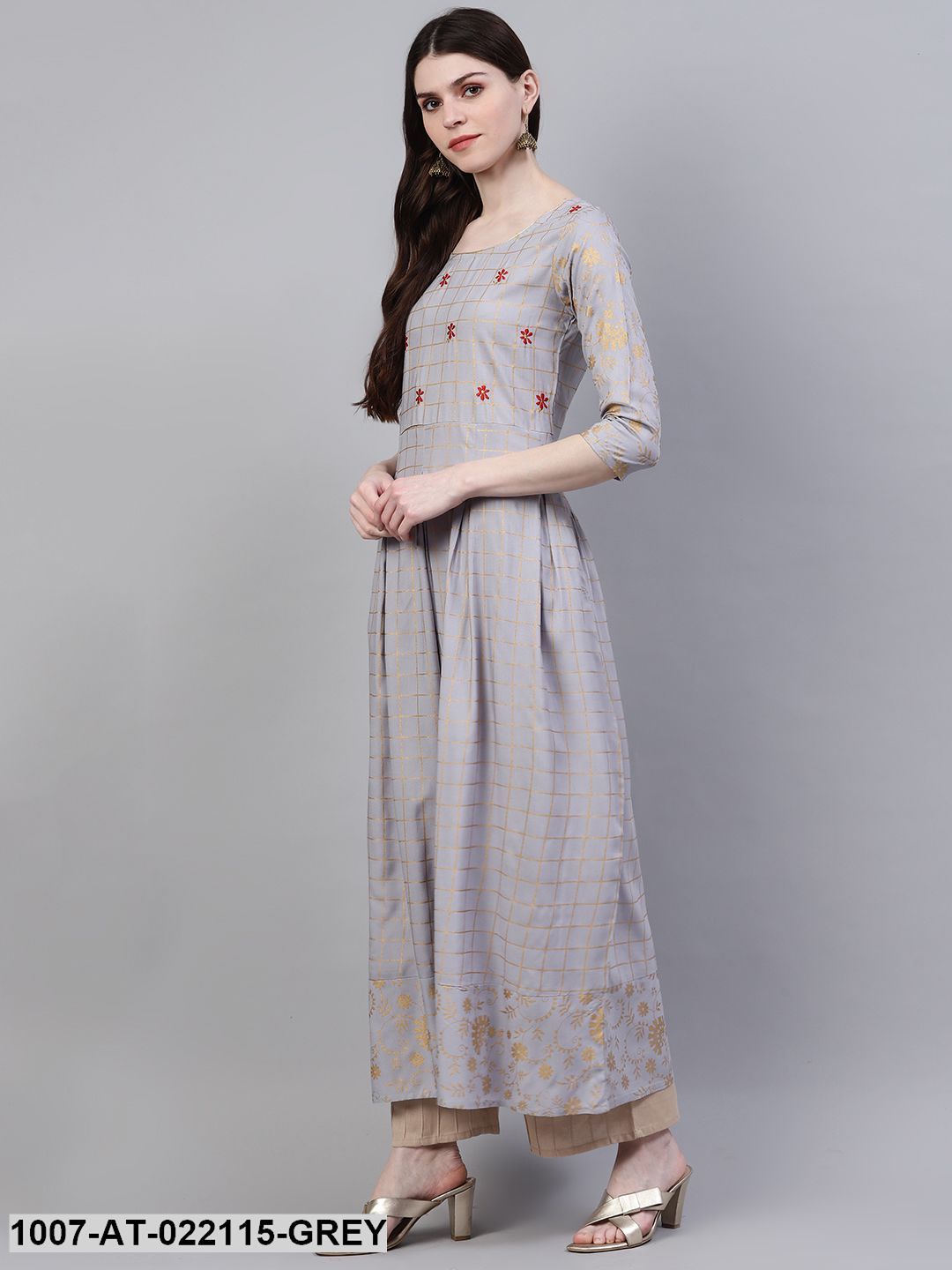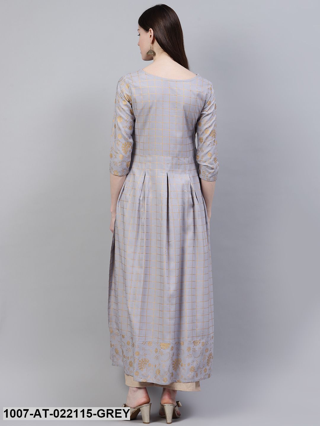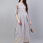 Women's Checkered Rayon Flared Kurta (Grey) (Pre-Order)