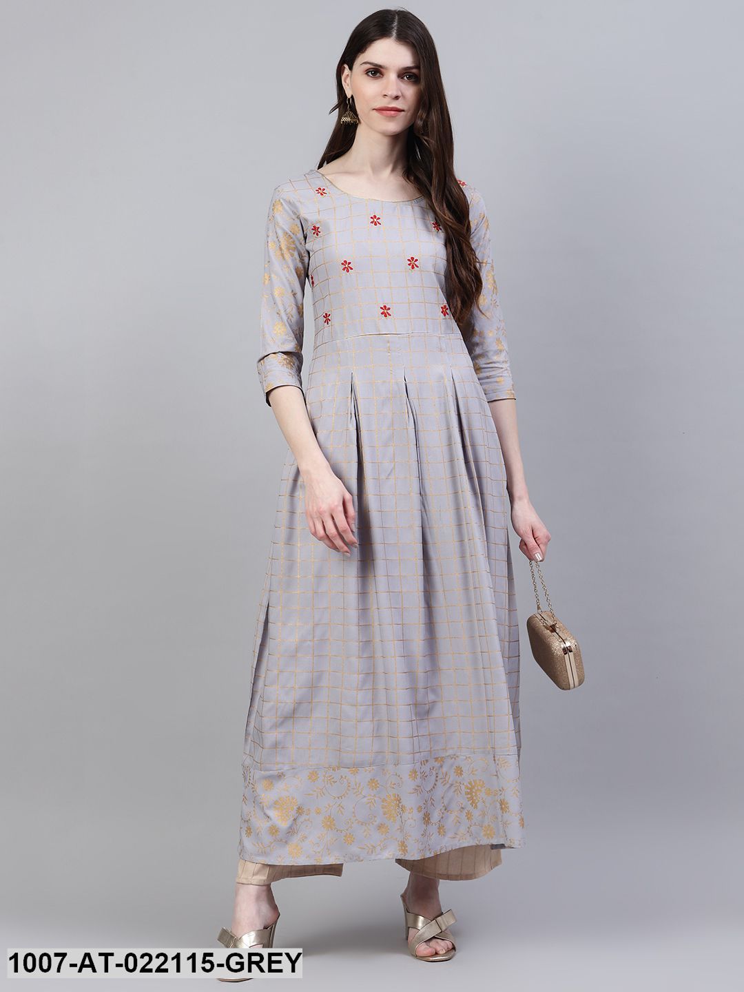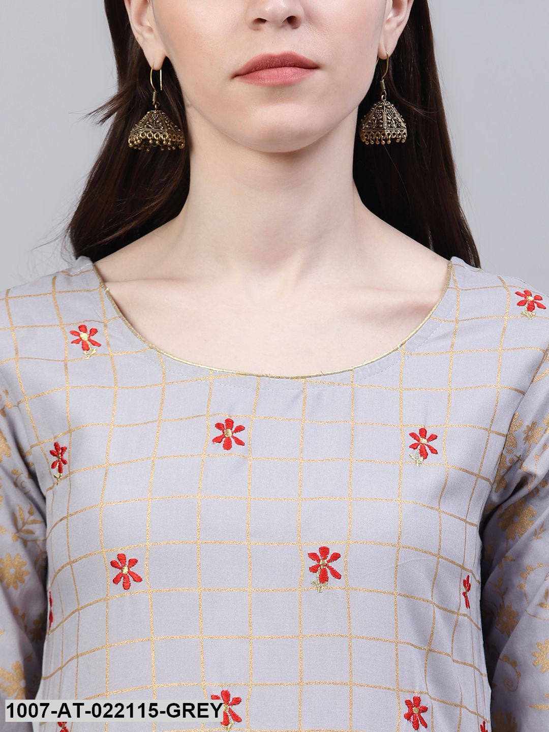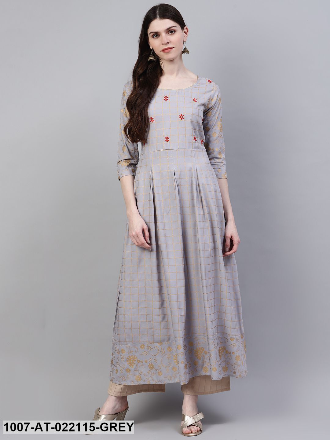 Women's Checkered Rayon Flared Kurta (Grey) (Pre-Order)