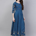 Women's Checkered Rayon Flared Kurta (Teal Blue) (Pre-Order)
