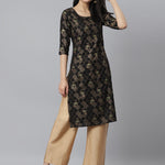 Women's Gold Print Rayon Straight Kurta (Pre-Order)