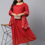 Gold Printed Rayon Flared Kurta Dupatta Set (Pre-Order)