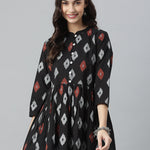 Ikat Printed Cotton Gathered Ethnic Short Tunic (Pre-Order)