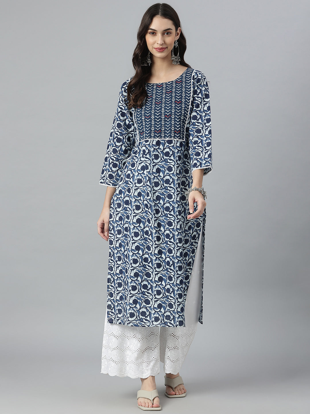 Indigo Printed Cotton Slub Straight Kurta (Pre-Order)