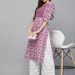 Purple Printed Cotton Slub Straight Kurta (Pre-Order)