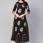 Black Gold Printed Round Neck 3/4Th Sleeves Straight Kurta With Skirt