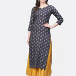 Grey Printed Straight Kurta set with Mango Checked Skirt