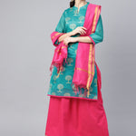 Floral Foil Print Chanderi Straight Kurta With Solid Skirt And Printed Dupatta