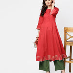 Coral Pink 3/4Th Sleeve A-Line Cotton Kurta With Palazzo
